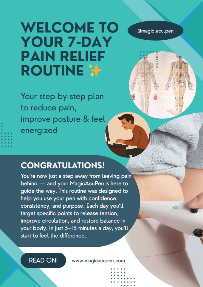 Our exclusive 19 page e-booklet “MagicAcuPen™ Reset-at-Home Companion” — a 7-day guided daily routine with easy-to-follow point maps, delivered instantly. (*limited offer)